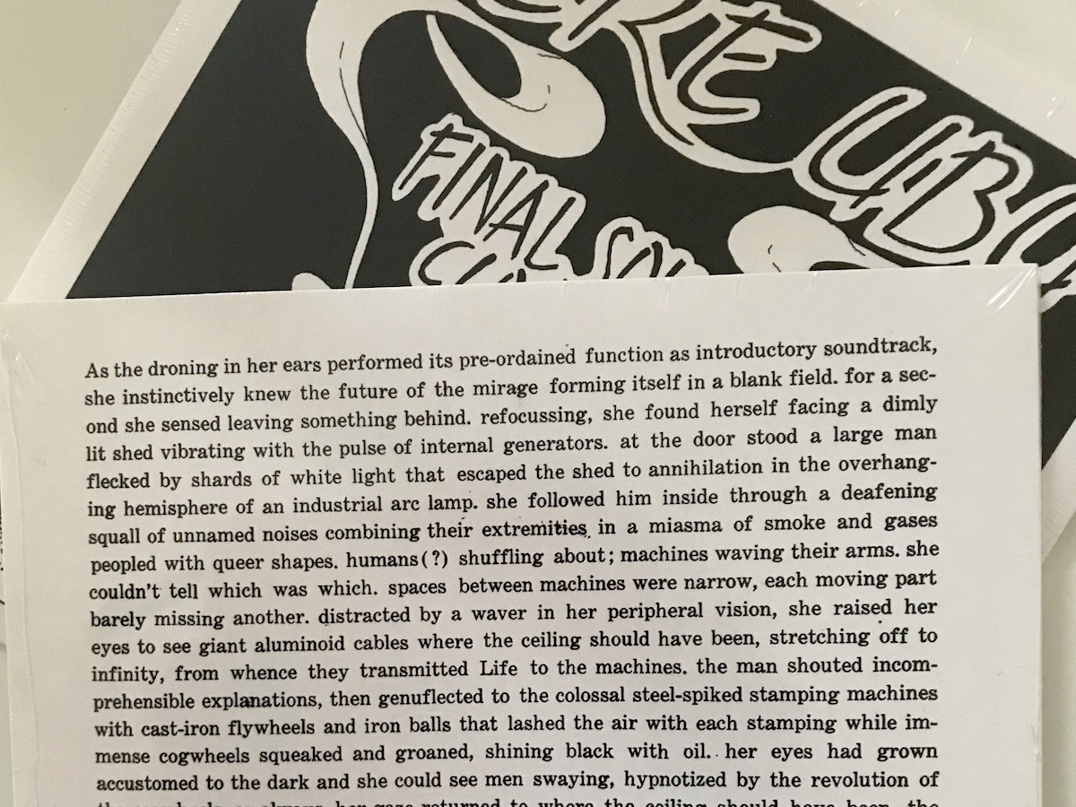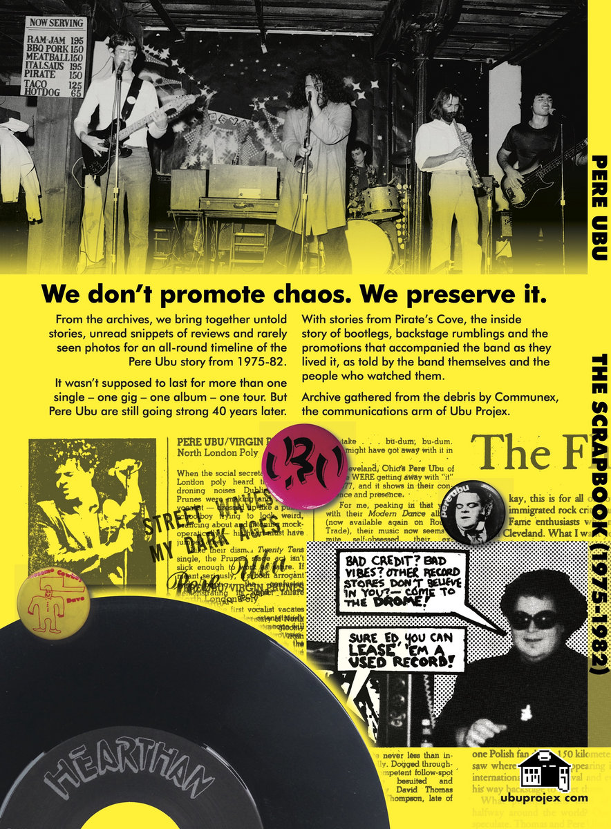 158 A4 pages that catalogues the beginnings of it all, Rocket From The Tombs fracturing and Pere Ubu forming, going on to their first European Tours and their first record deals. David Thomas relates the history of the band during this time, with asides from the critics, the press, the photos, the art and all the lyrics from 1975-82. Available for shipping from both the US and UK Ubutique. Canada - order from the UK shop to save on postage costs.